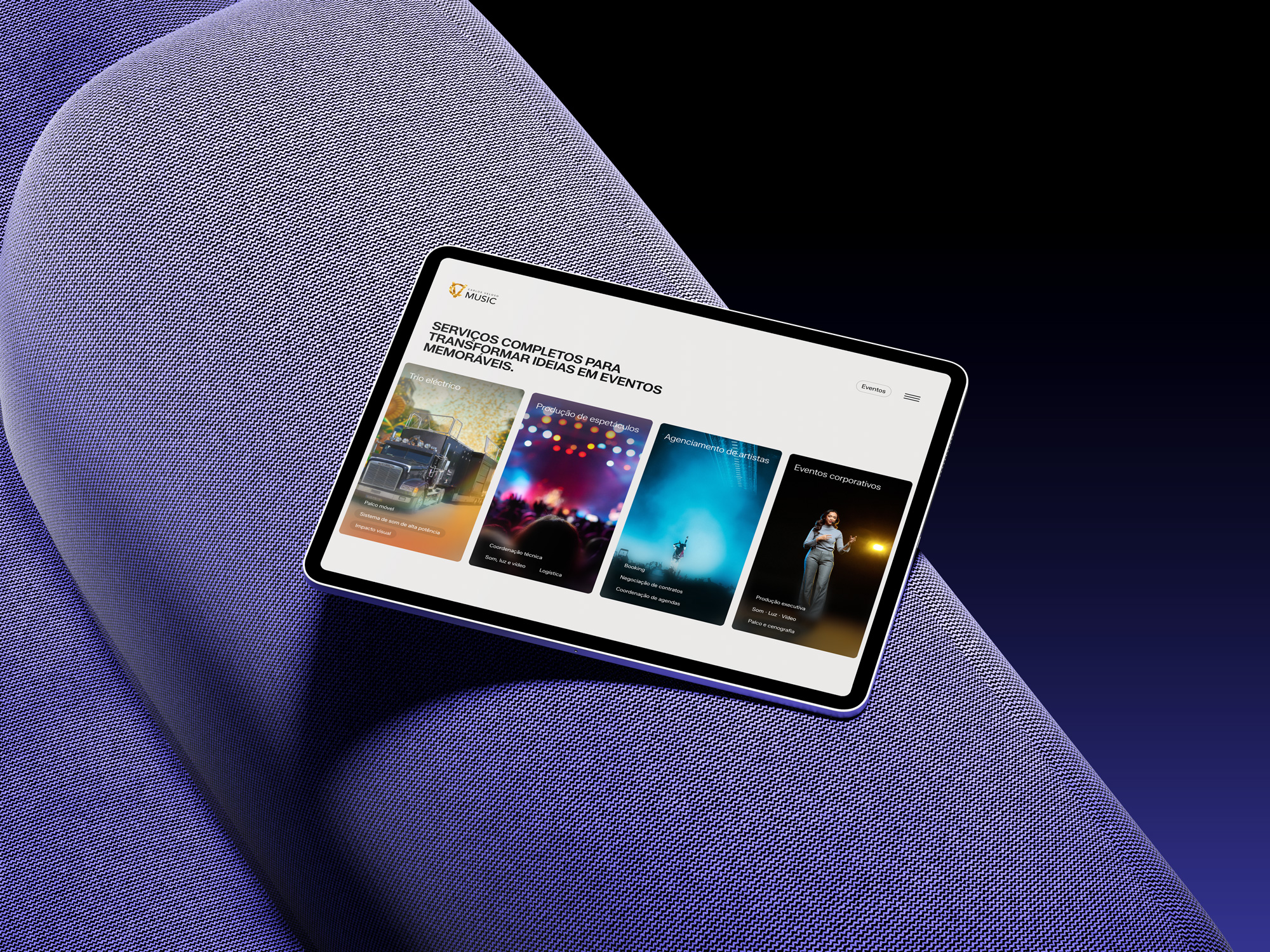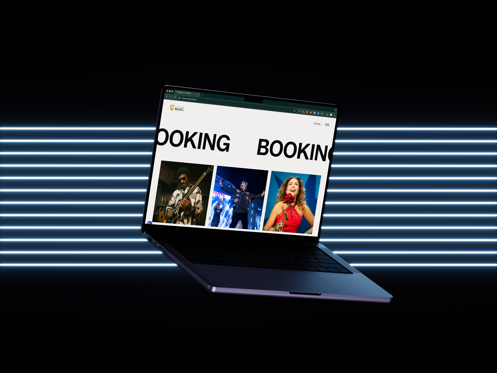 A Design Me foi responsável pelo desenvolvimento do novo website da CV Music, uma plataforma dedicada à promoção de artistas, eventos e experiências musicais.